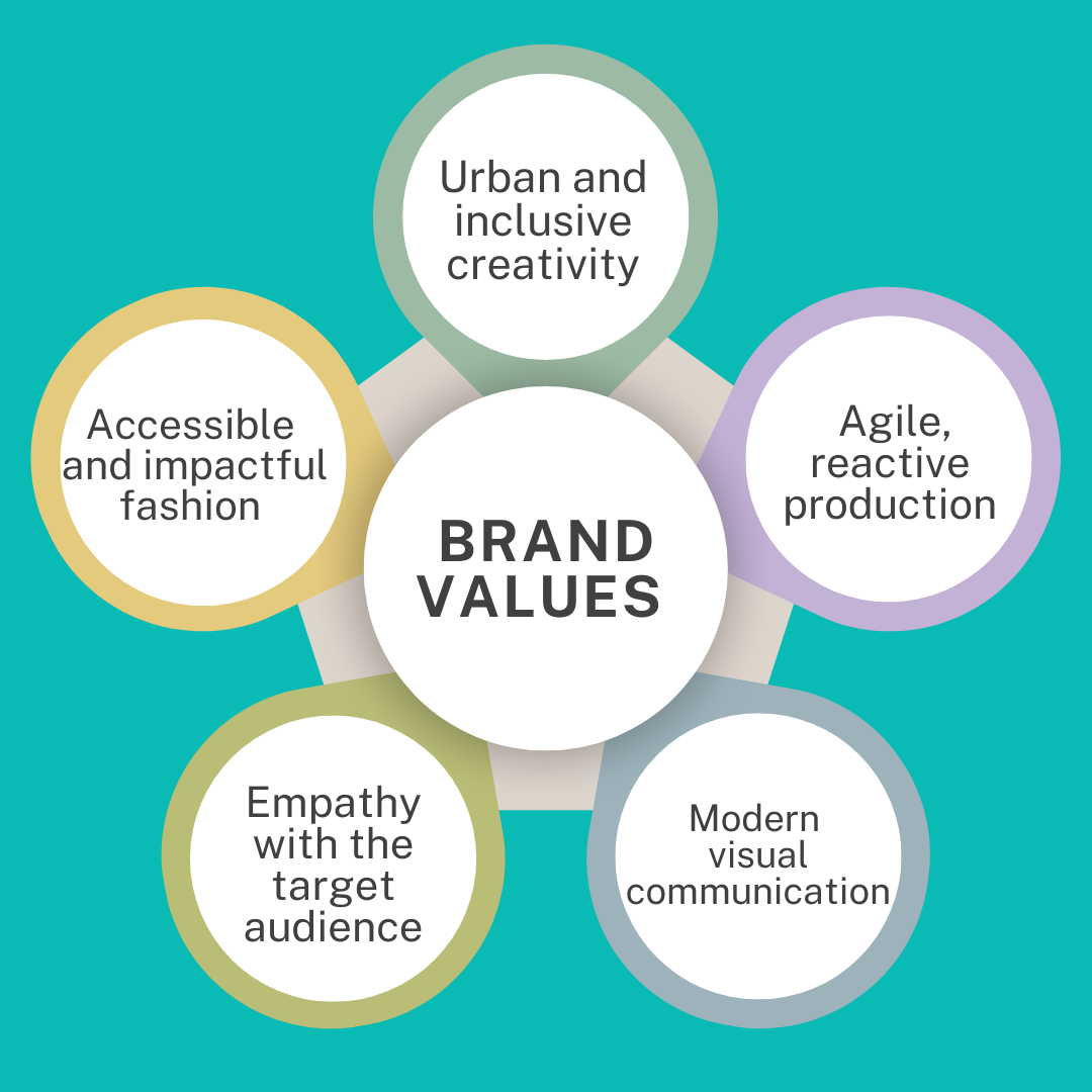 Ogni collezione è un mix di ironia, colore, stile e libertà espressiva. Il brand si rivolge a donne indipendenti, attente al dettaglio ma anche al budget, che desiderano distinguersi con leggerezza e originalità.